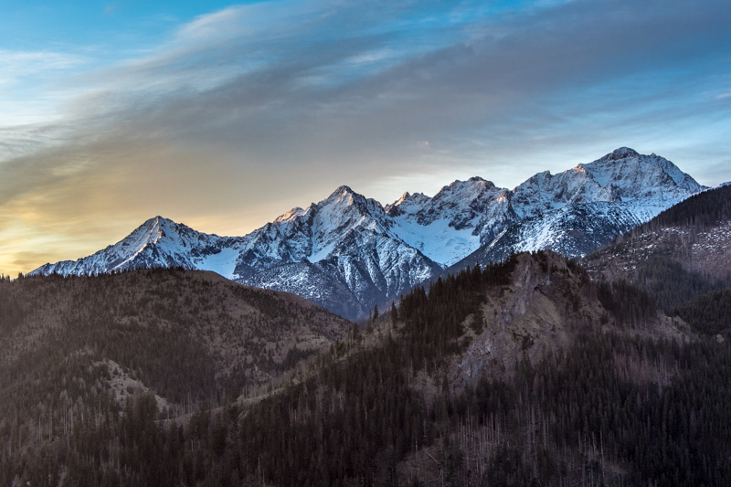 testowe Tatry o poranku Widok z Rusinowej Polany. Od lewej Jagnięcy Szczyt, Kołowy Szczyt, Czarny Szczyt, Baranie Rogi, Śnieżny Szczyt i Lodowy Szczyt. Kwiecień 2016. Parametry techniczne: Nikon D5200 © fot. Paweł Biernat data dodania: 30-04-2016