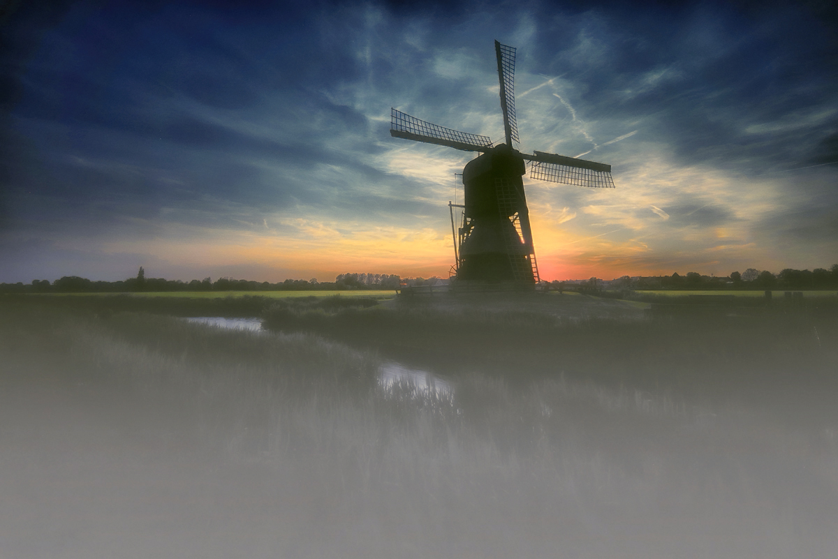 Mill Weel i Braken , Młyn polderowy , Rok budowy1632 ,Obdam , Źródło prądu Wiatr , Młyn na dawnym polderze Weel en Braken osuszył te 76 hektarów. duży polder jako drenaż podpolderowy na polderze Obdam. Polder powstał w wyniku osuszenia szeregu jezior (lub ugorów) znajdujących się na polderze Obdam. Patent na osuszenie czterech ugorów pod Obdamem, o łącznej powierzchni ponad 68 morgenów (a później podzielonych na dziewięć polderów), został udzielony 19 stycznia 1632 r. Jhr. Jacob van Wassenaar, Lord of Obdam, Hensbroek itp. Dziewięć otoczonych groblami i oddzielnych polderów było pierwotnie połączonych ośmioma przepustami pod rowami polderu Obdam. Dwa z nich, Weel i Poel, znajdowały się na zachód od wsi, pozostałe na wschodzie.