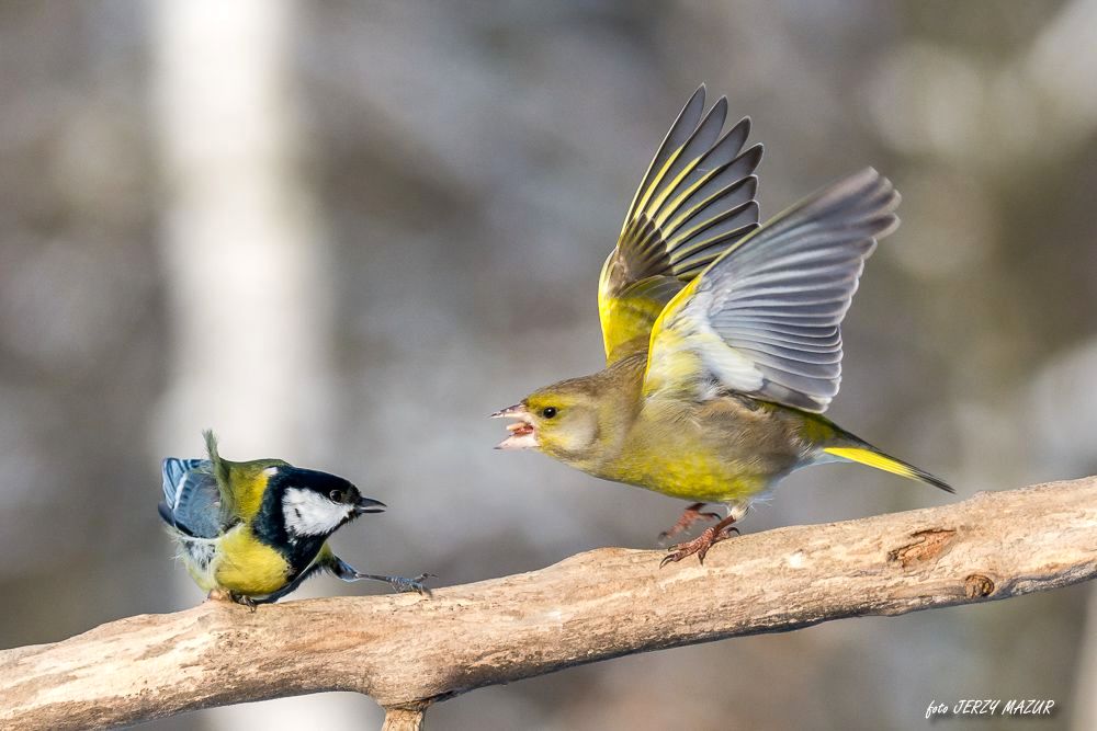 testowe Kłótnia. Bogatka (Parus major) & Dzwoniec (Carduelis chloris) © fot. Jerzy Mazurdata dodania: 04-06-2017