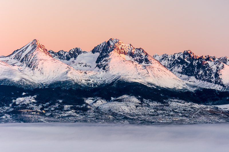 testowe Tatrzańskie szczyty w pierwszych promieniach słońca... Widok z Koziego Kamienia (1255 m n.p.m.). Słowacja. Styczeń 2017. Parametry techniczne: Aparat: ; Model: CORPORATION; Przysłona: f/8,0; Czas ekspozycji: 1/4 s; ISO: 100; Ogniskowa: 70 mm; © fot. Paweł Biernat data dodania: 30-01-2017