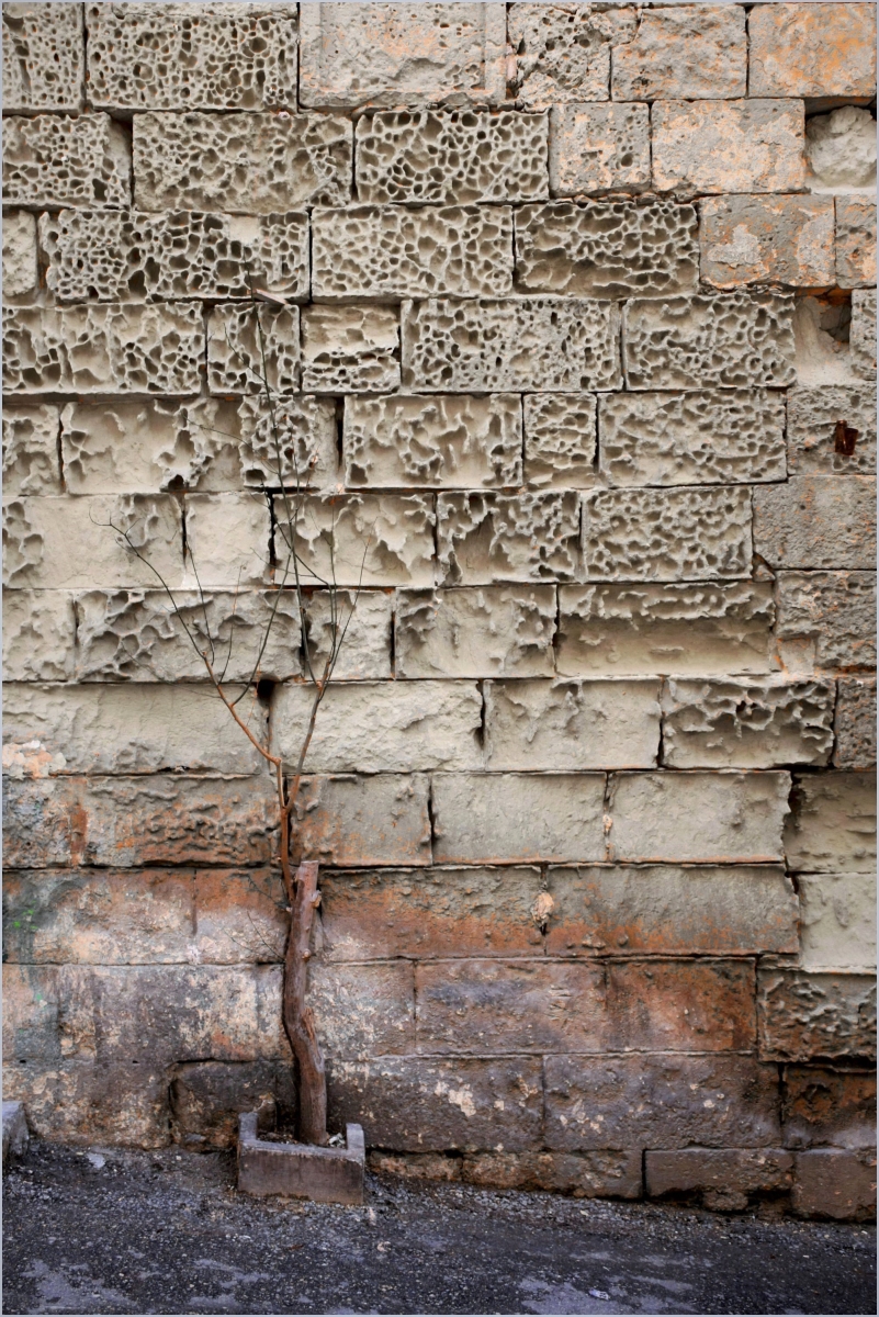 ** suche drzewko na tle muru z wapienia Parametry techniczne: Aparat: NIKON CORPORATION; Model: NIKON D3300; Przysłona: f/6,3; Czas ekspozycji: 1/160 s; ISO: 400; Ogniskowa: 24 mm; © fot. Małgorzata Jędraszczyk data dodania: 05-02-2019