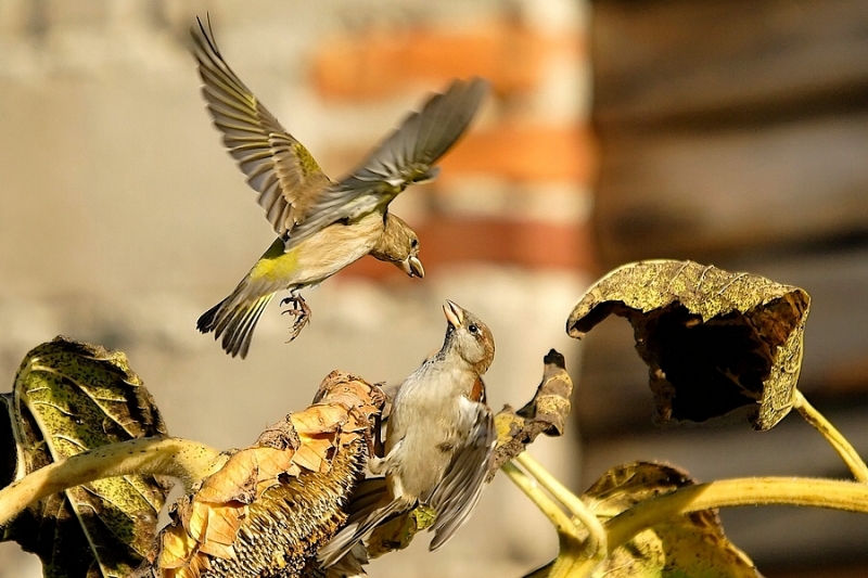 testowe 1- Dzwoniec i wróbel.... Wykonano na działce za płotem sąsiada... - zdjęcie poprawione Parametry techniczne: Canon 20 D,Sigma 50-500 f 4-6.3,statyw monopod © fot. Henryk Jarząbek data dodania: 17-02-2012