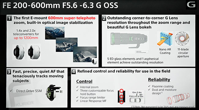 Nowy model z serii G Lens™ ma największą ogniskową ze wszystkich obiektywów zmiennoogniskowych Sony z mocowaniem typu E. W celu zapewnienia znakomitego obrazu, wydajnej pracy systemu AF i funkcjonalności wykorzystano w nim najbardziej zaawansowane rozwiązania techniczne. Po zainstalowaniu na jednym z najnowszych i najszybszych korpusów z mocowaniem typu E obiektyw umożliwia niezawodne śledzenie najróżniejszych poruszających się obiektów, takich jak sportowcy czy dzikie zwierzęta.