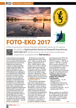 Polskie Towarzystwo Ochrony Przyrody „Salamandra” już po raz 25. zaprasza do udziału w Ogólnopolskim Konkursie Fotografii Przyrodniczej FOTO-EKO 2017. Tak jak rok temu, tak i w tym, prace konkursowe przyjmowane są poprzez serwis foto-kurier.pl.