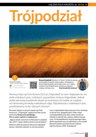 Całość została zamknięta w miłą dla oka, ciepłą w odbiorze kompozycję. Ta wielowątkowość zarejestrowanego trójpodziału spodobała nam się najbardziej i w ten sposób Roman Krupiński został pierwszym Liderem Ligi Foto-Kuriera 2023. Gratulujemy