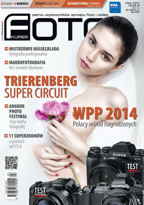 W tym wydaniu przedstawiamy ogromną ilość naprawdę dobrych i inspirujących zdjęć. Zapraszamy na egzotyczny dla Europejczyków Angkor Photo Festiwal, gdzie możemy zobaczyć jak mocno Azja kocha fotografię. Prezentujemy też najciekawsze prace z konkursu Trierenberg Super Circuit 2013. Do 17 marca można jeszcze zgłaszać prace do nowej edycji, w której pula nagród wynosi 10 tys. euro. Przedstawiamy również profesjonalne zdjęcia nagrodzone w ramach konkursu Hasselblad Masters 2014 oraz wybrane prace z World Press Photo 2014, gdzie wśród nagrodzonych nie zabrakło Polaków.
